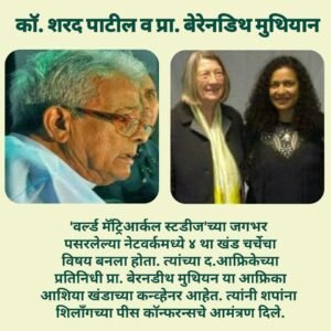 शेवटी भारतात, शिलाँगला होऊ घातलेल्या त्यांच्या ‘आंतरराष्ट्रीय पिस कान्फरन्स’मध्ये तरी काॅ.शरद पाटील व काॅ नजूबाई गवित यांनी पार्टिसिपेट व्हावे, अशी इच्छा व्यक्त करणारे इमेल आलेच. बेरेनडिथ मुथियान खूप उत्सुक होत्या की काॅ.शरद पाटील व काॅ नजूबाई गवित यांनी त्यांचे मातृसत्ताक व स्त्रिसत्ताक समाजावरील दृष्टिकोन त्यांच्या प्रतिनिधी बरोबर शिलाँग काॅन्फरन्समध्येतरी शेअर करावेत. मी त्यांना मेल करुन सांगितले हा प्रस्ताव मी काॅ. शरद पाटील यांच्यासमोर ठेवला आहे. मला दोनतीन दिवस द्या. मी त्यांचे उत्तर आपल्याला कळवितो.