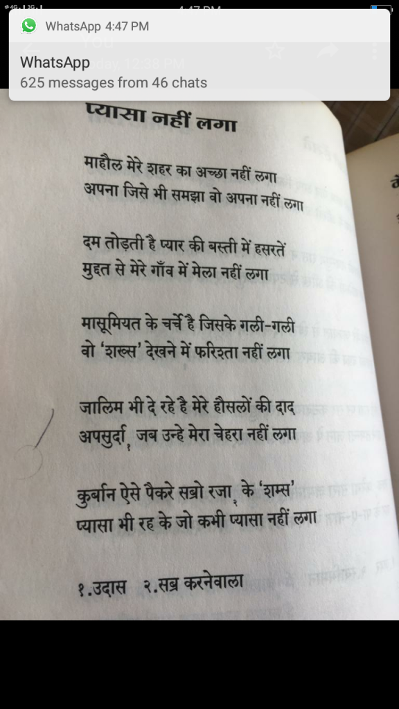 खाजगी मैफिलीत हिंदी , ऊर्दू शायरीबद्दल खूप गप्पा , चर्चा होत . नव्या जुन्या कविता गायल्या ऐकल्या जात . अनेक किस्से ऐकायला भेटत . ते सांगताना शम्स अगदी खुलून येत …ते सगळंंच आता परत कधी होणार नाही ! शहरात मला आवडणा-यांची संख्या कमी होते आहे आणि …..!!!